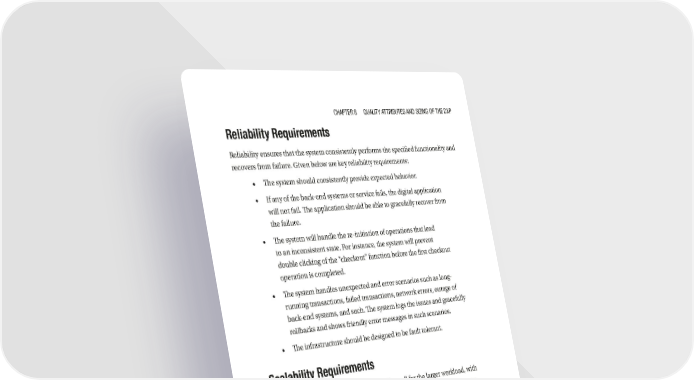 Chapter 8 Quality attributes and sizing of the dXp Reliability Requirements Reliability ensures that the system consistently performs the specified functionality and recovers from failure. Given below are key reliability requirements: • The system should consistently provide expected behavior. • If any of the back-end systems or service fails, the digital application will not fail. The application should be able to gracefully recover from the failure. • The system will handle the re-initiation of operations that lead to an inconsistent state. For instance, the system will prevent double clicking of the “checkout” function before the first checkout operation is completed. • The system handles unexpected and error scenarios such as long- running transactions, failed transactions, network errors, outage of back-end systems, and such. The system logs the issues and gracefully rollbacks and shows friendly error messages in such scenarios. • The infrastructure should be designed to be fault tolerant. Scalability Requirements Scalability ensures that the application scales well for the larger workload, with acceptable performance. The following are the main scalability requirements: • For on-premise deployments, the application should be deployed as a multinode cluster. • The system should be able to handle increased user load and data load, and should be able to handle future data growth. • Horizontal and vertical scaling should be supported by the system. • If any of the cluster nodes goes down (web server node, application server node, or database server node), the system should be able to load balance and seamlessly switch all the traffic to other nodes to provide the expected response. • The system should provide response within an acceptable time period, even during peak traffic. 219
