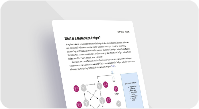 Chapter 3 Design What Is a Distributed Ledger? A replicated and consistent version of a ledger is distributed across libraries. Libraries can check and validate the authenticity and consistency of a book by observing, comparing, and taking consensus from other libraries. If a ledger is distributed across libraries, this can be considered a prefect analogy of a distributed ledger. A distributed ledger wouldn’t have central trust authority. Libraries are considered as nodes. Each node has a consistent version of a ledger. Transactions are added in blocks and blocks are added in the ledger, with the consensus of nodes participating in blockchain network (Figure 3-24). Figure 3-24. Blockchain Smart Contract Smart contracts are self-executing computer programs with an agreement between the participants on assets, and this contract exists across a distributed and decentralized blockchain network. For example, in a banking use-case, an account can be considered as an asset, whereas banks and account holders are the participants. Participants are the users of the blockchain network. Participants can write a smart contract with predefined agreements on assets. On the basis of transactions done by participants in the network, 97