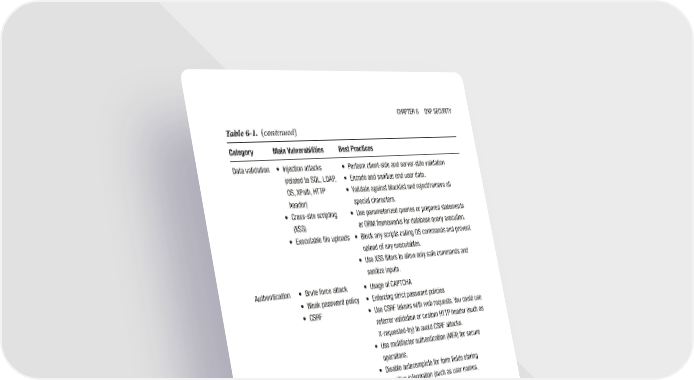 Chapter 6 DXp SeCurity Table 6-1. (continued) Category Main Vulnerabilities Best Practices Data validation • injection attacks • perform client-side and server-side validation (related to SQL, LDap, • encode and sanitize end user data. OS, Xpath, http • Validate against blacklist and reject/remove all header) special characters. • Cross-site scripting • use parameterized queries or prepared statements (XSS) or OrM frameworks for database query execution. • executable file uploads • Block any scripts calling OS commands and prevent upload of any executables. • use XSS filters to allow only safe commands and sanitize inputs. authentication • Brute force attack • usage of CaptCha • Weak password policy • enforcing strict password policies • CSrF • use CSrF tokens with web requests. you could use referrer validation or custom http header (such as X-requested-by) to avoid CSrF attacks. • use multifactor authentication (MFa) for secure operations. • Disable autocomplete for form fields storing sensitive information (such as user names, passwords, email iDs, etc.) authorization • absence of sufficient • Define role-based access and permission model. authorization and • Validate user details before sensitive operations permission model such as password update. • insecure user • use “deny by default” and “least privilege” policy. impersonation • implement fine-grained access control to resources such as pages and functionality. (continued) 191