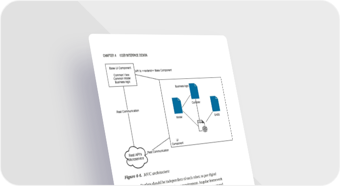 Chapter 4 User InterfaCe DesIgn Figure 4-4. MVC architecture • Portlets should be independent of each other, as per digital experience platform business requirement. Angular framework or React library along with Flux library makes a lean-structured presentation layer. Presentation components should be of high quality and should be well tested. Quality is achieved thoroughly and efficiently by testing presentation components using a test-driven approach. Therefore, framework and libraries like Karma, Jasmine, Mocha, Chai, etc., help to achieve high quality. Communication Between Presentation Components Sometimes it is vital that one presentation component responds to an action made in another presentation component. For example, after a user has selected a different account from the account list component, the transaction list is updated to show transactions related to that particular selected account in the transaction list component, as shown in Figure 4-5. If presentation components are on the same page, this can be 126