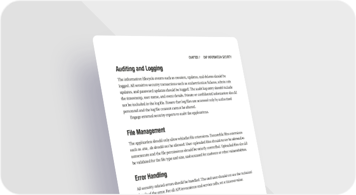Chapter 7 DXp InformatIon SeCurIty Auditing and Logging The information lifecycle events such as creation, updates, and deletes should be logged. All sensitive security transactions such as authentication failures, admin role updates, and password updates should be logged. The audit log entry should include the timestamp, user name, and event details. Private or confidential information should not be included in the log file. Ensure that log files are accessed only by authorized personnel and the log file content cannot be altered. Engage external security experts to audit the applications. File Management The application should only allow whitelist file extensions. Executable files extensions such as .exe, .sh should not be allowed. User-uploaded files should never be allowed to autoexecute and the file permissions should be strictly controlled. Uploaded files should be validated for the file type and size, and scanned for malware or other vulnerabilities. Error Handling All security-related errors should be handled. The end user should not see the technical details of the error. For all API invocations and service calls, set a timeout value. Secure Software Development Life Cycle A security review should be conducted in every phase of the software development life cycle (SDLC). During the architecture phase and design phases, security requirements should be considered; security reviews and security testing should be carried out during the build phase. Security standards such as SysAdmin, Audit, Network, Security (SANS). Payment card industry (PCI) standards should be followed based on the application and domain needs. Use the latest version of secure open-source components and avoid using open-source frameworks with known vulnerabilities. Check the public disclosures for each of the open-source components used. 209