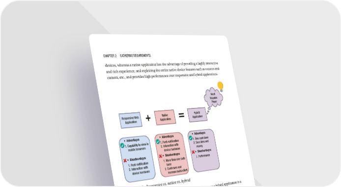 Chapter 2 GatherinG requirements devices, whereas a native application has the advantage of providing a highly interactive and rich experience, and exploiting the entire native device features such as sensors and camera, etc., and provides high performance over responsive and hybrid applications. Most Valuable Player Responsive Web Native Hybrid Application Application Application • Advantages • Advantages • Advantages 1. Capability to view in 1. Push notification 1. One code base mobile browsers 2. Interaction with 2. Save time and device hardware money • Disadvantages • Disadvantages • Disadvantages 1. Push notification 1. More than one code 1. Performance 2. Interaction with base device hardware 2. Cost more and Increase build effort Figure 2-6. Responsive vs. native vs. hybrid You need to go through the usage of the application because a hybrid application is a web application (shown in Figure 2-7), built using HTML 5 and JavaScript’s wrapped-in native container, which loads most of the information on the page as the user navigates through the application, whereas native applications instead download most of the content when the user first installs the application. 42