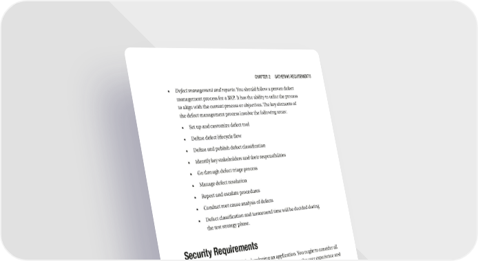 Chapter 2 GatherinG requirements • Defect management and reports: You should follow a proven defect management process for a BXP. It has the ability to tailor the process to align with the current process or objectives. The key elements of the defect management process involve the following areas: • Set up and customize defect tool • Define defect lifecycle flow • Define and publish defect classification • Identify key stakeholders and their responsibilities • Go through defect triage process • Manage defect resolution • Report and escalate procedures • Conduct root cause analysis of defects • Defect classification and turnaround time will be decided during the test strategy phase. Security Requirements Security is a main concern while developing an application. You ought to consider all the aspects revolving around security. DXP security enhances the user experience and ensure data integrity, authenticity, and authorization. A banking experience platform is always vulnerable to attacks. You need to go through the requirements while designing a banking portal. 53