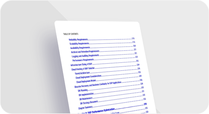 Table of ConTenTs Reliability Requirements������������������������������������������������������������������������������������������������������ 219 Scalability Requirements ����������������������������������������������������������������������������������������������������� 219 Availability Requirements ���������������������������������������������������������������������������������������������������� 220 Archival and Retention Requirements ��������������������������������������������������������������������������������� 221 Logging and Auditing Requirements ����������������������������������������������������������������������������������� 221 Performance Requirements ������������������������������������������������������������������������������������������������� 222 Infrastructure Sizing of DXP ������������������������������������������������������������������������������������������������������ 222 Cloud Hosting of DXP Solution �������������������������������������������������������������������������������������������������� 224 Tiered Architecture �������������������������������������������������������������������������������������������������������������� 224 Cloud Deployment Considerations ��������������������������������������������������������������������������������������� 225 Cloud Deployment Model ����������������������������������������������������������������������������������������������������� 226 Disaster Recovery and Business Continuity for DXP Applications �������������������������������������������� 228 DR Planning ������������������������������������������������������������������������������������������������������������������������� 229 DR Implementation �������������������������������������������������������������������������������������������������������������� 230 DR Maintenance ������������������������������������������������������������������������������������������������������������������ 231 DR Strategy Document �������������������������������������������������������������������������������������������������������� 232 Chapter Summary ��������������������������������������������������������������������������������������������������������������������� 233 Chapter 9: DXP Performance Optimization ����������������������������������������������������������� 235 DXP Performance Optimization of Presentation Layer �����������������������������������������������������