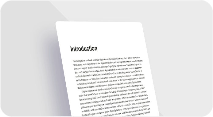 Introduction As enterprises embark on their digital transformation journey, they define the vision, road map, and objectives of the digital transformation programs. Digital transformation involves legacy modernization, reimagining digital experiences, implementing cloud- first and mobile-first models. Such digital transformation involves various challenges and risk factors including but not limited to niche technology stack, unavailability of skilled resources, long time to market, and such. Enterprises need to carefully evaluate technology trends and future outlook, and invest in the technology stack that caters to their current digital transformation goals as well as their long-term digital vision. Digital experience platforms (DXPs) are an integrated set of technologies and tools that provide best-of-breed modern digital technologies for enterprises. A DXP has a preintegrated set of technology stacks that addresses the risk related to a niche/ unproven technology stack and risky integrations. DXPs are designed on the platform philosophy so that they can be easily extended and scaled to meet future demands of scalability and onboard new innovations. A DXP is one of the most popular approaches for building an enterprise grade digital platform. A DXP provides a set of capabilities to quickly develop a personalized, secure, and scalable enterprise platform. DXPs are designed in such a way that they can incorporate modern digital technology to build next-generation enterprise applications. You can develop your own digital experience platform. The book looks at various open-source tools, technology, and frameworks that can be used for building DXPs. This book covers core concepts to build enterprise grade DXPs. Readers get a holistic view to build DXPs and will be able to transform existing applications to a DXP that is capable of incorporating emerging technologies in near future. DXPs are not just limited to a few commercial products. Enterprises can build their own experience platforms to meet their needs. This book discusses the methods and technology frameworks across various layers to design a DXP. We divided this book into five parts: requirements and design, development, security, infrastructure/NFR, and a case study to cover end-to-end DXP lifecycle scenarios. We discuss proven best practices, design methods, and technology frameworks along with contextual real-world case studies for each of the chapters. xxiii