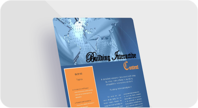 Research Focus Goals: Interactive and visually attractive. Easily submitted back to the teacher in a format less than 10 MB in size and recordable for student records. Incorporating pre-existing FLASH components in a more accessible manor. E-Learning for Participation and Skills Project Goals: Accessibility Web accessibility means that people with disabilities can use the Web. More specifically, web accessibility means that people regardless of disability can perceive, understand, navigate, and interact with the Web. Using web accessibility principles benefits all users because it requires web content and software is flexible enough to meet different user needs, preferences and situations. The Australian Government has endorsed the Web Content Accessibility Guidelines (WCAG) version 2.0 for all government websites: Australian Government - Web Guide - Accessibility (Opens in new window). This requirement supersedes the previous mandate for compliance with WCAG 1.0. Digital Video There is increasing demand for video content in VET e-learning delivery, driven by various factors including improved capabilities of mobile devices, and the desire to make e-learning content more engaging for learners. The National Broadband Network is also expected to drive the use of video content for VET e-learning. Research on this topic was initiated in 2011 with the aim of providing e-learning content developers and teachers more guidance about creating and delivering content for learners to ensure it can be utilised by the widest number of learners across various platforms and devices. Learning Network Queensland | Brisbane North Institute of TAFE 5
