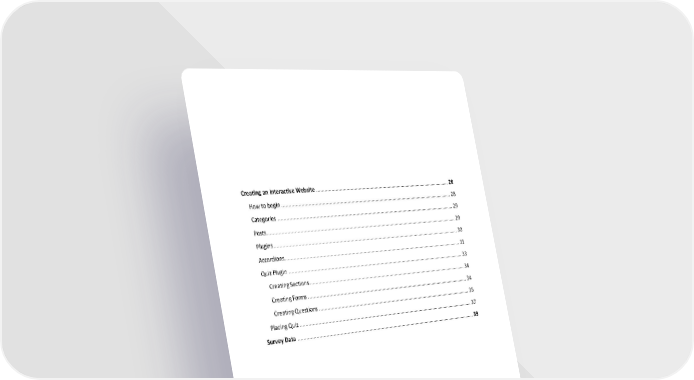 Creating an Interactive Website ..................................................................................................... 28 How to begin ............................................................................................................................... 28 Categories ................................................................................................................................... 29 Posts............................................................................................................................................ 29 Plugins ......................................................................................................................................... 30 Accordions ................................................................................................................................... 31 Quiz Plugin .................................................................................................................................. 33 Creating Sections ..................................................................................................................... 34 Creating Forms ........................................................................................................................ 34 Creating Questions .................................................................................................................. 35 Placing Quiz ................................................................................................................................. 37 Survey Data .................................................................................................................................... 39