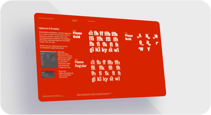 Burger King® Brand Identity Guidelines Visual Identity Ligatures & Swashes 075 Typography Ligatures & Swashes Ligatures ct fb ff ffb ffh Swashes Flame Bold and Regular contains ligatures Flame Flame A K M for a select number of characters. Flame bold only contains stylistic alternates Bold ffi ffk ffl fft Bold and discretionary swashes. The swashes should be used sparingly and not within Q R r longer lines of copy. fh fi fk fl ft Make sure your ligatures are turned on whenever using Flame Bold: gi Ki ky st wi W Y InDesign: Edit your Basic Character Formats panel in your Basic Paragraph style Ligatures (or any other Flame character style) ct fb ff ffb ffh and check the Regular “Ligatures” box. ffi ffk ffl fft Illustrator: Select the ligatures icon in the Open fh fi fk fl ft Type panel. gi Ki ky st wi TM & © 2020 Burger King Corporation. All Rights Reserved. Taglines and examples included on this slide must be reviewed by BK® legal team for trademark Confidential and Proprietary Information of The Burger King Corporation clearance, and local legal counsel for compliance with applicable laws and regulations.