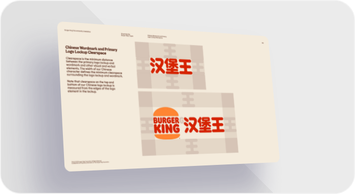 Burger King® Brand Identity Guidelines Visual Identity Chinese Wordmark and Primary 042 Burger King® Logos Logo Lockup Clearspace Chinese Wordmark and Primary Logo Lockup Clearspace Clearspace is the minimum distance between the primary logo lockup and wordmark and other visual and verbal elements. The width of our Chinese character defines the minimum clearspace surrounding the logo lockup and wordmark. Note that clearspace on the top and bottom of our Chinese logo lockup is measured from the edges of the logo element in the lockup. TM & © 2020 Burger King Corporation. All Rights Reserved. Confidential and Proprietary Information of The Burger King Corporation