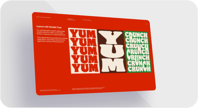 Burger King® Brand Identity Guidelines Visual Identity Layouts with Variable Type 093 Grid System & Layouts Layouts with Variable Type Our variable type is used to make large, graphic patterns, either out of single words or sequences of repeating words. This is generally for evocative Out of Home applications, and will be covered in the application section of this document. TM & © 2020 Burger King Corporation. All Rights Reserved. Taglines and examples included on this slide must be reviewed by BK® legal team for trademark Confidential and Proprietary Information of The Burger King Corporation clearance, and local legal counsel for compliance with applicable laws and regulations.