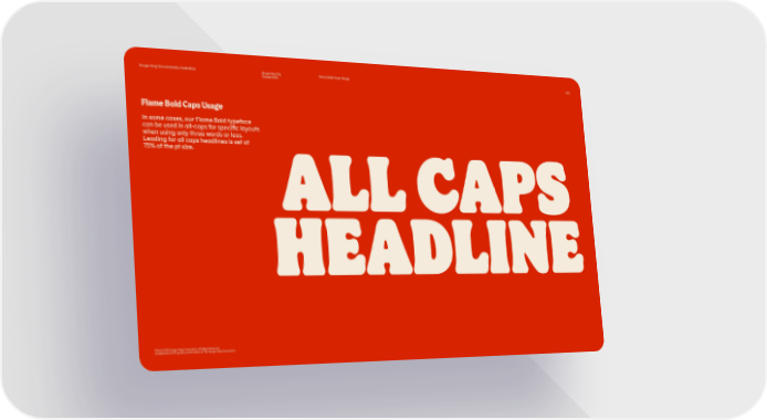 Burger King® Brand Identity Guidelines Visual Identity Flame Bold Caps Usage 073 Typography Flame Bold Caps Usage In some cases, our Flame Bold typeface can be used in all-caps for specific layouts when using only three words or less. Leading for all caps headlines is set at 75% of the pt size. ALL CAPS HEADLINE TM & © 2020 Burger King Corporation. All Rights Reserved. Confidential and Proprietary Information of The Burger King Corporation