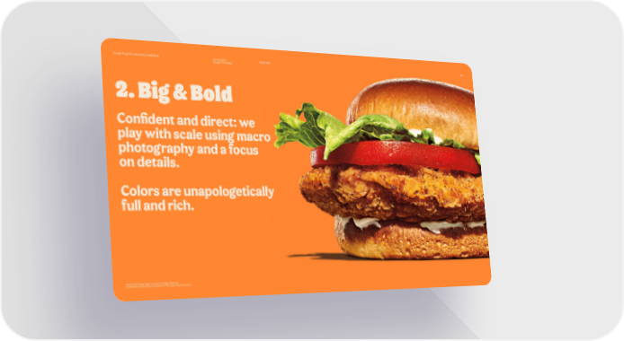 Burger King® Brand Identity Guidelines Introduction Big & Bold 016 Design Principles 2. Big & Bold Confident and direct: we play with scale using macro photography and a focus on details. Colors are unapologetically full and rich. TM & © 2020 Burger King Corporation. All Rights Reserved. Confidential and Proprietary Information of The Burger King Corporation