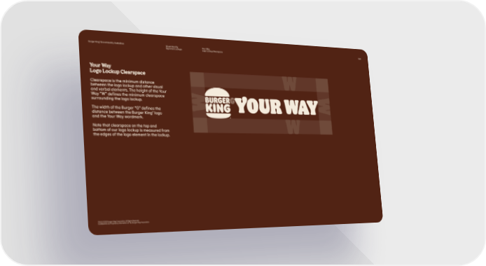 Burger King® Brand Identity Guidelines Visual Identity Your Way 060 Signature Lockups Logo Lockup Clearspace Your Way Logo Lockup Clearspace Clearspace is the minimum distance between the logo lockup and other visual and verbal elements. The height of the Your Way “W” defines the minimum clearspace surrounding the logo lockup. The width of the Burger “G” defines the distance between the Burger King® logo and the Your Way wordmark. Note that clearspace on the top and bottom of our logo lockup is measured from the edges of the logo element in the lockup. TM & © 2020 Burger King Corporation. All Rights Reserved. Confidential and Proprietary Information of The Burger King Corporation