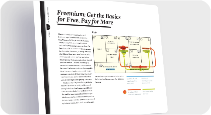 patterns 96 free as a business Model The term “freemium” was coined by Jarid Lukin and popularized by venture capitalist Fred Wilson on his blog. It stands for business models, mainly Web-based, that blend free basic services with paid premium services. The freemium model is characterized by a large user base benefi ting from a free, no-strings-attached offer. Most of these users never become paying customers; only a small portion, usually less than 10 percent of all users, subscribe to the paid premium services. This small base of paying users subsidizes the free users. This is possible because of the low marginal cost of serving addi- tional free users. In a freemium model, the key metrics to watch are (1) the average cost of serv- ing a free user, and (2) the rates at which free users convert to premium (paying) customers. Flickr, the popular photo-sharing Web site acquired by Yahoo! in 2005, provides a good example of a freemium business model. Flickr users can subscribe for free to a basic account that enables them to upload and share images. The free service has certain constraints, such as limited storage space and a maximum number of uploads per month. For a small annual fee users can purchase a “pro” account and enjoy unlim- ited uploads and storage space, plus additional features. Freemium: Get the Basics for Free, Pay for More yahoo! platform management free basic photo sharing premium photo sharing mass customized switching costs casual users high-volume users fl ickr platform brand fl ickr.com yahoo.com platform development storage costs free limited basic accounts annual subscription pro account Flickr free limited basic accounts VP CR CH CS KP KA KR R$ C$ Large base of basic accounts for casual users Small base of paying “pro” users Variable cost depending on number of photos stored Fixed and sunk costs related to platform development free limited basic accounts free limited basic accounts sharing premium photo R$ free basic photo sharing annual subscription pro account high-volume users annual subscription pro account annual subscription pro account annual subscription pro account premium photo sharing bmgen_final.indd 96 6/15/10 5:37 PM