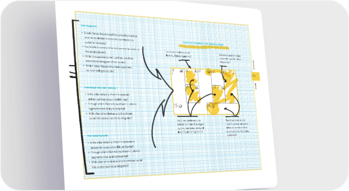 185 sCenarIos desIgn 185 VP CR CH CS KP KA KR R$ C$ the tourists • Should the service be based on a proprietary device or on an application that can be downloaded to customer handsets? • Could airlines serve as Channel partners to distribute the service/device? • Which prospective content partners would be interested in being part of the service? • Which Value Propositions would customers be most willing to pay for? the home delivery service • Is the value added suffi cient to motivate delivery services to pay monthly fees? • Through which Channels could such Customer Segments most easily be reached? • With what other devices and/or software would this service need to be integrated? the wine farmer • Is the value added suffi cient to motivate a landowner to pay a monthly service fee? • Through which Channels could such Customer Segments most easily be reached? • With what other devices and/or software would this service need to be integrated? Could we create resource, activity, or Channel synergies by simultaneously serving all three Customer Segments? questions regarding the business model Could one model serve all three Customer Segments? Does each segment need a separate, specifi c Value Proposition? Should we serve one or more Customer Segments at low or no cost in order to attract other, high-value customers? KR CH KA CS CR CS CS R$ ( bmgen_final.indd 185 6/15/10 5:44 PM