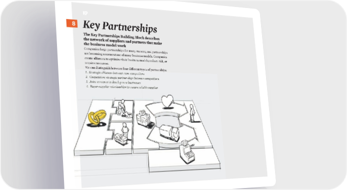 The Key Partnerships Building Block describes the network of suppliers and partners that make the business model work Companies forge partnerships for many reasons, and partnerships are becoming a cornerstone of many business models. Companies create alliances to optimize their business models, reduce risk, or acquire resources. We can distinguish between four diā¦erent types of partnerships: 1. Strategic alliances between non-competitors 2. Coopetition: strategic partnerships between competitors 3. Joint ventures to develop new businesses 4. Buyer-supplier relationships to assure reliable supplies Key Partnerships 1. Strategic alliances between non-competitors 2. Coopetition: strategic partnerships between competitors 3. Joint ventures to develop new businesses 4. Buyer-supplier relationships to assure reliable supplies KP 8 bmgen_final.indd 38 6/15/10 5:32 PM