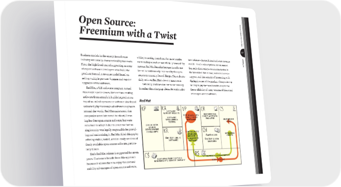 free as a business Model patterns 97 Business models in the enterprise software industry are usually characterized by two traits: First, the high fi xed cost of supporting an army of expert software developers who build the product; Second, a revenue model based on selling multiple per-user licenses and regular upgrades of the software. Red Hat, a U.S. software company, turned this model upside down. Rather than creating software from scratch, it builds its product on top of so-called open source software developed voluntarily by thousands of software engineers around the world. Red Hat understood that companies were interested in robust, licens- ing fee-free open source software, but were reluctant to adopt it due to concerns that no single entity was legally responsible for provid- ing and maintaining it. Red Hat fi lled this gap by offering stable, tested, service-ready versions of freely available open source software, particu- larly Linux. Each Red Hat release is supported for seven years. Customers benefi t from this approach because it allows them to enjoy the cost and stability advantages of open source software, while protecting them from the uncertainties surrounding a product not offi cially “owned” by anyone. Red Hat benefi ts because its software kernel is continuously improved by the open source community free of charge. This substan- tially reduces Red Hat’s development costs. Naturally, Red Hat also has to earn money. So rather than charging clients for each major new release—the traditional software revenue model—it sells subscriptions. For an annual fee, each client enjoys continuous access to the latest Red Hat release, unlimited service support, and the security of interacting with the legal owner of the product. Companies are willing to pay for these benefi ts despite the free availability of many versions of Linux and other open source software. Open Source: Freemium with a Twist (linux) open source development community software support services software versioning & testing free (linux) open source based software continuously upgraded, serviced, & guaranteed software self-service & direct access to engineers self-service users enterprise clients red hat (linux) software redhat.com red hat global branches cost structure contains elements of a service company professional subscription free software Red Hat software professional subscription professional subscription VP CR CH CS KP KA KR R$ C$ clients professional subscription enterprise clients professional subscription professional subscription professional subscription R$ professional subscription professional subscription users free software self-service users free software continuously free software free software free software continuously upgraded, serviced, & guaranteed software free (linux) open source based software bmgen_final.indd 97 6/15/10 5:37 PM