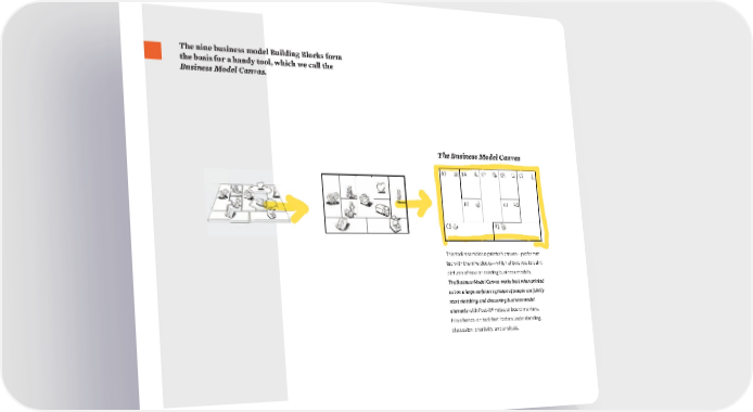 VP CR CH CS KP KA KR R$ C$ The nine business model Building Blocks form the basis for a handy tool, which we call the Business Model Canvas. This tool resembles a painter’s canvas—preformat- ted with the nine blocks—which allows you to paint pictures of new or existing business models. The Business Model Canvas works best when printed out on a large surface so groups of people can jointly start sketching and discussing business model elements with Post-it® notes or board markers. It is a hands-on tool that fosters understanding, discussion, creativity, and analysis. The Business Model Canvas bmgen_final.indd 42 6/15/10 5:32 PM
