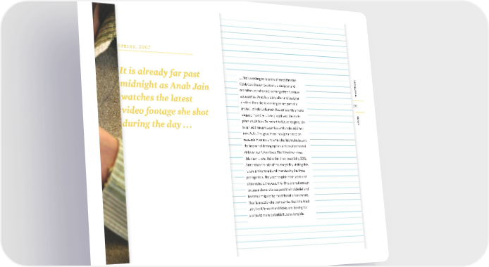 storyteLLIng desIgn 171 171 S p r i n g , 2 0 0 7 It is already far past midnight as Anab Jain watches the latest video footage she shot during the day . . . S p r i n g , 2 0 0 7 It is already far past midnight as Anab Jain watches the latest video footage she shot during the day . . . . . . She’s working on a series of small fi lms for Colebrook Bosson Saunders, a designer and manufacturer of award-winning oΩice furniture accessories. Anab is a storyteller and designer, and the fi lms she is working on are part of a project to help Colebrook Bosson Saunders make sense of how the future of work and the work- place could look. To make this future tangible, she invented three protagonists and projected them into 2012. She gave them new jobs based on research into new and emerging technologies and the impact of demographics and environmental risks on our future lives. The fi lms then show this near future. But rather than describing 2012, Anab takes the role of the storyteller, visiting this future environment and interviewing the three protagonists. They each explain their work and show objects they use. The fi lms are real enough to cause viewers to suspend their disbelief and become intrigued by the diΩerent environment. That is exactly what companies that hire Anab Jain, like Microsoft and Nokia, are looking for: stories to make potential futures tangible. bmgen_final.indd 171 6/15/10 5:43 PM