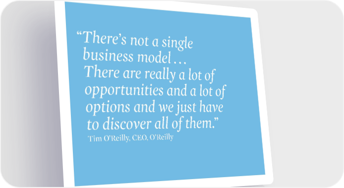 “There’s not a single business model . . . Ther e are really a lot of opportunities and a lot of options and we just have to discover all of them.” Tim O’Reilly, CEO, O’Reilly bmgen_final.indd 198 6/15/10 5:44 PM