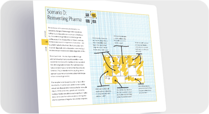 188 sCenarIos desIgn Scenario D: Reinventing Pharma VP CR CH CS KP KA KR R$ C$ CR CH KA KR CS The landscape of the pharmaceutical industry has completely changed. Pharmacogenomic research has fulfi lled its promise and is now a core part of the indus- try. Personalized drugs tailored to individual genetic profi les account for a large portion of industry revenues. All this has increased the importance of prevention—and is partially replacing treatment, thanks to substantially improved diagnostic tools and a better understanding of the links between diseases and individual genetic profi les. These two trends—the rise of personalized drugs and the increasing importance of prevention—have completely transformed the traditional pharmaceutical manufacturing business model. The twin trends have had a dramatic impact on pharma’s Key Resources and Activities. They’ve transformed the way drug makers approach customers and provoked substantial changes in how revenue is generated. The new pharma landscape has taken a heavy toll on incumbents. A number were unable to adapt quickly enough and disappeared or were acquired by more agile players. At the same time, upstarts with innovative business models were able to acquire signifi cant market share. Some were themselves acquired and integrated into the operations of larger but less nimble companies. What are the attributes of a competitive Value Proposition under the new landscape? What new Key Resources and Key Activities will pro- vide a competitive advan- tage when personalized drugs and prevention are the industry’s main focus? How will revenues be generated when the focus is on personalized drugs and prevention? How will the Cost Structure of a pharmaceutical compa- ny’s business model change under this new landscape? Which partnerships will maximize the effectiveness of a drug company’s new business model? What roles will Customers and Customer Relation- ships play when personal- ized drugs are an industry mainstay? KP VP R$ 188 bmgen_final.indd 188 6/15/10 5:44 PM