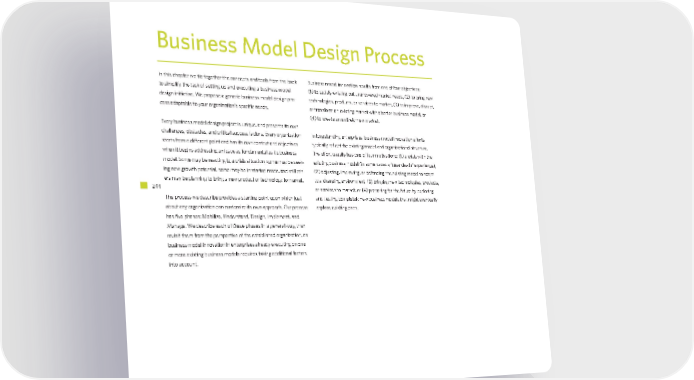 244 In this chapter we tie together the concepts and tools from the book to simplify the task of setting up and executing a business model design initiative. We propose a generic business model design pro- cess adaptable to your organization’s specific needs. Every business model design project is unique, and presents its own challenges, obstacles, and critical success factors. Every organization starts from a different point and has its own context and objectives when it begins addressing an issue as fundamental as its business model. Some may be reacting to a crisis situation, some may be seek- ing new growth potential, some may be in startup mode, and still oth- ers may be planning to bring a new product or technology to market. The process we describe provides a starting point upon which just about any organization can customize its own approach. Our process has five phases: Mobilize, Understand, Design, Implement, and Manage. We describe each of these phases in a general way, then revisit them from the perspective of the established organization, as business model innovation in enterprises already executing on one or more existing business models requires taking additional factors into account. Business model innovation results from one of four objectives: (1) to satisfy existing but unanswered market needs, (2) to bring new technologies, products, or services to market, (3) to improve, disrupt, or transform an existing market with a better business model, or (4) to create an entirely new market. In longstanding enterprises, business model innovation efforts typically reflect the existing model and organizational structure. The effort usually has one of four motivations: (1) a crisis with the existing business model (in some cases a “near death” experience), (2) adjusting, improving, or defending the existing model to adapt to a changing environment, (3) bringing new technologies, products, or services to market, or (4) preparing for the future by exploring and testing completely new business models that might eventually replace existing ones. Business Model Design Process bmgen_final.indd 244 6/15/10 5:45 PM