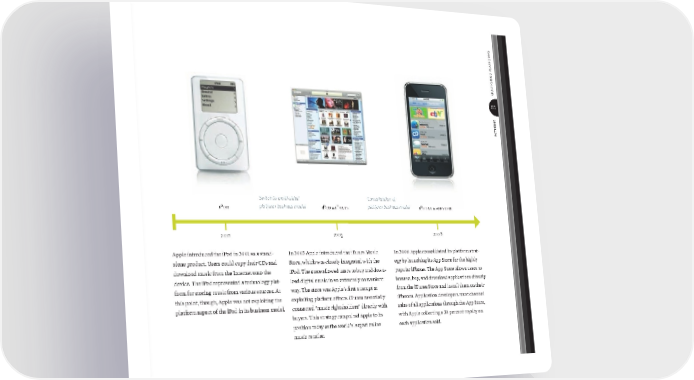 Multi-sided platforMs patterns 85 Apple introduced the iPod in 2001 as a stand- alone product. Users could copy their CDs and download music from the Internet onto the device. The iPod represented a technology plat- form for storing music from various sources. At this point, though, Apple was not exploiting the platform aspect of the iPod in its business model. In 2003 Apple introduced the iTunes Music Store, which was closely integrated with the iPod. The store allowed users to buy and down- load digital music in an extremely convenient way. The store was Apple’s fi rst attempt at exploiting platform effects. iTunes essentially connected “music rightsholders” directly with buyers. This strategy catapulted Apple to its position today as the world’s largest online music retailer. In 2008 Apple consolidated its platform strat- egy by launching its App Store for the highly popular iPhone. The App Store allows users to browse, buy, and download applications directly from the iTunes Store and install them on their iPhones. Application developers must channel sales of all applications through the App Store, with Apple collecting a 30 percent royalty on each application sold. Switch to multi-sided platform business model Consolidation of platform business model 2001 ipod 2003 ipod & iTunes 2008 iphone & appstore bmgen_final.indd 85 6/15/10 5:36 PM