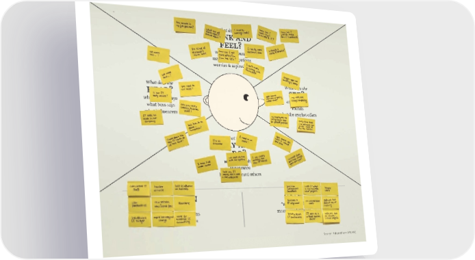 132 Customer InsIghts desIgn 132 29 CREATIVE PROBLEM SOLVING TOOLS 29 CREATIVE PROBLEM SOLVING TOOLS What does she say and do? attitude in public appearance behavior toward others What does she hear? what friends says what boss says what infl uencers pain fears frustrations obstacles What does she think and feel? what really counts major preoccupations worries & aspirations What does she see? environment friends what the market oΩers gain "wants"/needs measures of success obstacles Source : Adapted from XPLANE What does s he say and do? attitude in public appearance behavior toward others What does s he hear? what friends says what boss says what infl uencers pain fears frustrations obstacles What does s he think and feel? what really counts major preoccupations worries & aspirations gain What does s he see? environment friends what the market oΩers "wants"/needs measures of success obstacles Source : Adapted from XPLANE bmgen_final.indd 132 6/15/10 5:39 PM