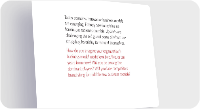 Today countless innovative business models are emerging. Entirely new industries are forming as old ones crumble. Upstarts are challenging the old guard, some of whom are struggling feverishly to reinvent themselves. How do you imagine your organization’s business model might look two, five, or ten years from now? Will you be among the dominant players? Will you face competitors brandishing formidable new business models? bmgen_final.indd 4 6/15/10 5:31 PM