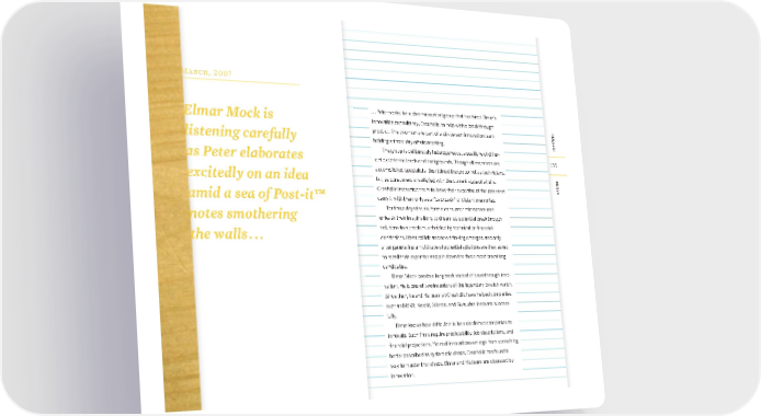 desIgn 135 IdeatIon 135 M a r c h , 2 0 0 7 Elmar Mock is listening carefully as Peter elaborates excitedly on an idea amid a sea of Post-it™ notes smothering the walls . . . . . . Peter works for a pharmaceutical group that has hired Elmar’s innovation consultancy, Creaholic, to help with a breakthrough product. The two men are part of a six-person innovation team holding a three-day offsite meeting. The group is deliberately heterogeneous, a pastiche of differ- ent experience levels and backgrounds. Though all members are accomplished specialists, they joined the group not as technicians, but as consumers unsatisfi ed with the current state of affairs. Creaholic instructed them to leave their expertise at the door and carry it with them only as a “backpack” of distant memories. For three days the six form a consumer microcosm and unleash their imaginations to dream up potential breakthrough solutions to a problem, unbridled by technical or fi nancial constraints. Ideas collide and new thinking emerges, and only after generating a multitude of potential solutions are they asked to recall their expertise and pin down the three most promising candidates. Elmar Mock boasts a long track record of breakthrough inno- vation. He is one of two inventors of the legendary Swatch watch. Since then, he and his team at Creaholic have helped companies such as BMW, Nestlé, Mikron, and Givaudan innovate success- fully. Elmar knows how diffi cult it is for established companies to innovate. Such fi rms require predictability, job descriptions, and fi nancial projections. Yet real innovations emerge from something better described as systematic chaos. Creaholic has found a way to master that chaos. Elmar and his team are obsessed by innovation. bmgen_final.indd 135 6/15/10 5:40 PM