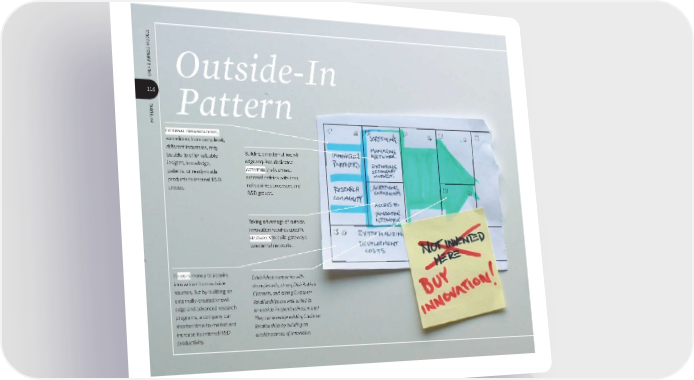 patterns 116 open business Models VP CR CH CS KP KA KR C$ Outside-In Pattern It costs money to acquire innovation from outside sources. But by building on externally-created knowl- edge and advanced research programs, a company can shorten time-to-market and increase its internal R&D productivity. Building on external knowl- edge requires dedicated activities that connect external entities with inter- nal business processes and R&D groups. external organizations, sometimes from completely diΩerent industries, may be able to oΩer valuable insights, knowledge, patents, or ready-made products to internal R&D groups. Taking advantage of outside innovation requires specifi c resources to build gateways to external networks. Established companies with strong brands, strong Distribution Channels, and strong Customer Relationships are well suited to an outside-in open business model. They can leverage existing Customer Relationships by building on outside sources of innovation. bmgen_final.indd 116 6/15/10 5:39 PM