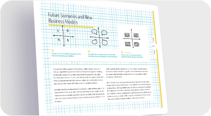189 aCtIVIty desIgn 189 Future Scenarios and new Business Models 1 develop a set of future scenarios based on two or more main criteria. 2 describe each scenario with a story that outlines the main elements of the scenario 3 workshop develop one or more appropriate business models for each scenario The goal of combining scenarios with business model innovation efforts is to help your organization prepare for the future. This process engenders meaning- ful discussion about a diffi cult topic, because it forces participants to project themselves into concrete “futures” underpinned by hard (though assumed) facts. When participants describe their business models they must be able to make a clear case for their choices within the context of the specifi c scenario. Scenarios should be developed before the business model workshop begins. The sophistication of the “screenplays” will vary depending on your budget. Keep in mind that once you develop scenarios, they may be usable for other purposes as well. Even simple scenarios help jumpstart creativity and project participants into the future. Ideally you should develop between two and four different scenarios based on two or more criteria in order to run a good business model scenario workshop. Each scenario should be titled and described with a short, specifi c narrative outlining the main elements. Begin the workshop by asking participants to review the scenarios, then develop an appropriate business model for each. If your objective is to maximize a group’s understanding of all the potential futures, you might want everyone to participate in a single group and let them collectively develop different business models for each scenario. If you are more interested in generating a set of very diverse future business models, you might decide to organize participants into different groups that work in parallel on separate solutions for the various scenarios. bmgen_final.indd 189 6/15/10 5:44 PM