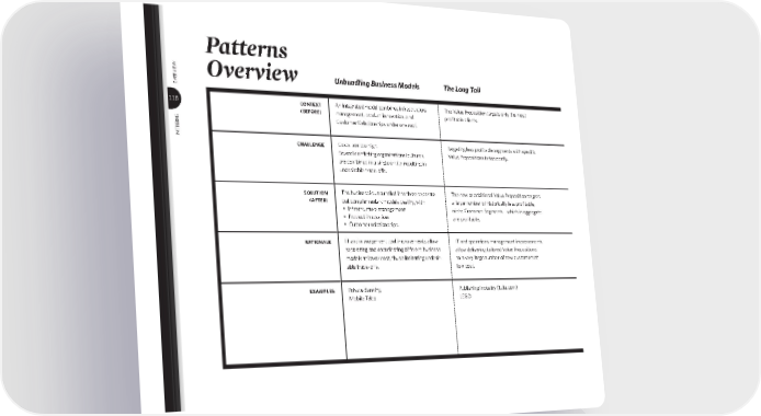 patterns 118 oVerVieW Patterns Overview Unbundling Business Models The Long Tail Multi-Sided Platforms FREE as a Business Model Open Business Models context (before) An integrated model combines infrastructure management, product innovation, and Customer Relationships under one roof. The Value Proposition targets only the most profi table clients. One Value Proposition targets one Customer Segment. A high-value, high-cost Value Proposition is offered to paying customers only. R&D Resources and Key Activities are concentrated in-house: • Ideas are invented “inside” only • Results are exploited “inside” only challenge Costs are too high. Several confl icting organizational cultures are combined in a single entity, resulting in undesirable trade-offs. Targeting less profi table segments with specifi c Value Propositions is too costly. Enterprise fails to acquire potential new cus- tomers who are interested in gaining access to a company’s existing customer base (e.g. game developers who want to reach console users) The high price dissuades customers. R&D is costly and/or productivity is falling. solution (after) The business is unbundled into three separate but complementary models dealing with • Infrastructure management • Product innovation • Customer relationships The new or additional Value Proposition targets a large number of historically less profi table, niche Customer Segments—which in aggregate are profi table. A Value Proposition “giving access” to a com- pany’s existing Customer Segment is added (e.g. a game console manufacturer provides software developers with access to its users) Several Value Propositions are offered to different Customer Segments with different Revenue Streams, one of them being free- of-charge (or very low cost). Internal R&D Resources and Activities are leveraged by utilizing outside partners. Internal R&D results are transformed into a Value Proposition and offered to interested Customer Segments. rationale IT and management tool improvements allow separating and coordinating different business models at lower cost, thus eliminating undesir- able trade-offs. IT and operations management improvements allow delivering tailored Value Propositions to a very large number of new customers at low cost. An intermediary operating a platform between two or more Customer Segments adds Revenue Streams to the initial model. Non-paying Customer Segments are subsidized by paying customers in order to attract the maximum number of users. Acquiring R&D from external sources can be less expensive, resulting in faster time- to-market. Unexploited innovations have the potential to bring in more revenue when sold outside. examples Private Banking Mobile Telco Publishing Industry (Lulu.com) LEGO Google Video game consoles from Nintendo, Sony, Microsoft Apple iPod, iTunes, iPhone Advertising and newspapers Metro Flickr Open Source Red Hat Skype (versus Telco) Gillette Razor and blades Procter & Gamble GlaxoSmithKline Innocentive bmgen_final.indd 118 6/15/10 5:39 PM