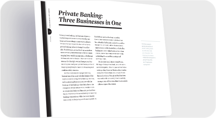 Swiss private banking, the business of provid- ing banking services to the very wealthy, was long known as a sleepy, conservative industry. Yet over the last decade the face of the Swiss private banking industry changed consider- ably. Traditionally, private banking institutions were vertically integrated and performed tasks ranging from wealth management to brokerage to fi nancial product design. There were sound reasons for this tight vertical integration. Out- sourcing was costly, and private banks preferred keeping everything in-house due to secrecy and confi dentiality concerns. But the environment changed. Secrecy became less of an issue with the demise of the mystique surrounding Swiss banking practices, and outsourcing became attractive with the breakup of the banking value chain due to the emergence of specialty service providers such as transaction banks and fi nancial product bou- tiques. The former focus exclusively on handling banking transactions, while the latter concen- trate solely on designing new fi nancial products. Zurich-based private banking institution Maerki Baumann is an example of a bank that has unbundled its business model. It spun oΩ its transaction-oriented platform business into a separate entity called Incore Bank, which oΩers banking services to other banks and securities dealers. Maerki Baumann now focuses solely on building Customer Relationships and advising clients. On the other hand, Geneva-based Pictet, the largest Swiss private bank, has preferred to remain integrated. This 200-year-old institution develops deep Customer Relationships, handles many client transactions, and designs its own fi nancial products. Though the bank has been successful with this model, it has to carefully manage trade-oΩs between three fundamentally diΩerent types of businesses. Private Banking: Three Businesses in One The fi gure opposite depicts the traditional private banking model, describes trade-oΩs, and unbundles it into three basic businesses: relationship management, product innovation, and infrastructure management. patterns 60 unbundling business Models bmgen_final.indd 60 6/15/10 5:33 PM