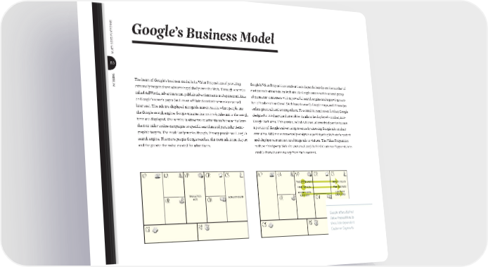 80 patterns Multi-sided platforMs The heart of Google’s business model is its Value Proposition of providing extremely targeted text advertising globally over the Web. Through a service called AdWords, advertisers can publish advertisements and sponsored links on Google’s search pages (and on an aΩiliated content network as we will later see). The ads are displayed alongside search results when people use the Google search engine. Google ensures that only ads relevant to the search term are displayed. The service is attractive to advertisers because it allows them to tailor online campaigns to specifi c searches and particular demo- graphic targets. The model only works, though, if many people use Google’s search engine. The more people Google reaches, the more ads it can display and the greater the value created for advertisers. Google’s Value Proposition to advertisers depends heavily on the number of customers it attracts to its Web site. So Google caters to this second group of consumer customers with a powerful search engine and a growing num- ber of tools such as Gmail (Web based e-mail), Google maps, and Picasa (an online photo album) among others. To extend its reach even further, Google designed a third service that enables its ads to be displayed on other, non- Google Web sites. This service, called AdSense, allows third parties to earn a portion of Google's advertising revenue by showing Google ads on their own sites. AdSense automatically analyzes a participating Web site’s content and displays relevant text and image ads to visitors. The Value Proposition to these third party Web site owners, Google’s third Customer Segment, is to enable them to earn money from their content. Google’s Business Model targeted ads advertisers targeted ads free search monetizing content advertisers web surfers content creators VP VP CR CR CH CH CS CS KP KP KA KA KR KR R$ R$ C$ C$ Google oΩers distinct Value Propositions to three interdependent Customer Segments targeted ads advertisers targeted ads advertisers free search web surfers free search web surfers content creators monetizing content content creators bmgen_final.indd 80 6/15/10 5:35 PM