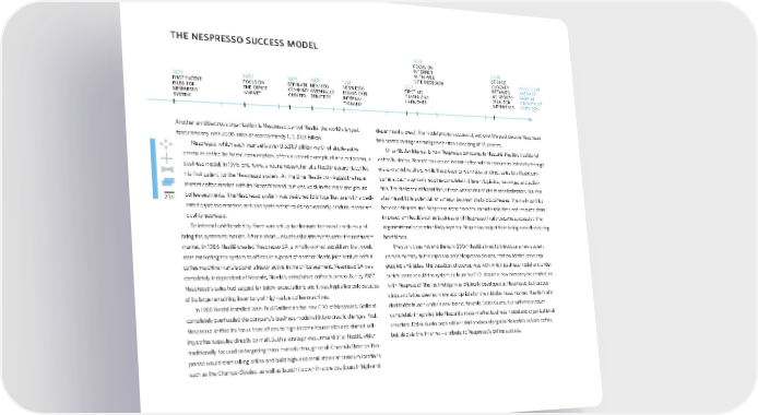 236 the nespresso success model Another ambidextrous organization is Nespresso, part of Nestlé, the world’s largest food company with 2008 sales of approximately U.S. $101 billion. Nespresso, which each year sells over U.S.$1.9 billion worth of single-serve premium coffee for home consumption, offers a potent example of an ambidextrous business model. In 1976, Eric Favre, a young researcher at a Nestlé research lab, fi led his fi rst patent for the Nespresso system. At the time Nestlé dominated the huge instant coffee market with its Nescafé brand, but was weak in the roast and ground coffee segments. The Nespresso system was designed to bridge that gap with a dedi- cated espresso machine and pod system that could conveniently produce restaurant- quality espresso. An internal unit headed by Favre was set up to eliminate technical problems and bring the system to market. After a short, unsuccessful attempt to enter the restaurant market, in 1986 Nestlé created Nespresso SA, a wholly-owned subsidiary that would start marketing the system to offi ces in support of another Nestlé joint venture with a coffee machine manufacturer already active in the offi ce segment. Nespresso SA was completely independent of Nescafé, Nestlé’s established coffee business. But by 1987 Nespresso’s sales had sagged far below expectations and it was kept alive only because of its large remaining inventory of high-value coffee machines. In 1988 Nestlé installed Jean-Paul Gaillard as the new CEO of Nespresso. Gaillard completely overhauled the company’s business model with two drastic changes. First, Nespresso shifted its focus from offi ces to high-income households and started sell- ing coffee capsules directly by mail. Such a strategy was unheard of at Nestlé, which traditionally focused on targeting mass markets through retail Channels (later on Nes- presso would start selling online and build high-end retail stores at premium locations such as the Champs-Élysées, as well as launch its own in-store boutiques in high-end department stores). The model proved successful, and over the past decade Nespresso has posted average annual growth rates exceeding of 35 percent. Of particular interest is how Nespresso compares to Nescafé, Nestlé’s traditional coffee business. Nescafé focuses on instant coffee sold to consumers indirectly through mass-market retailers, while Nespresso concentrates on direct sales to affl uent con- sumers. Each approach requires completely different logistics, resources, and activi- ties. Thanks to the different focus there was no risk of direct cannibalization. Yet, this also meant little potential for synergy between the two businesses. The main confl ict between Nescafé and Nespresso arose from the considerable time and resource drain imposed on Nestlé’s coffee business until Nespresso fi nally became successful. The organizational separation likely kept the Nespresso project from being cancelled during hard times. The story does not end there. In 2004 Nestlé aimed to introduce a new system, complementary to the espresso-only Nespresso devices, that could also serve cap- puccino and lattes. The question, of course, was with which business model and under which brand should the system be launched? Or should a new company be created, as with Nespresso? The technology was originally developed at Nespresso, but cappuc- cinos and lattes seemed more appropriate for the mid-tier mass market. Nestlé fi nally decided to launch under a new brand, Nescafé Dolce Gusto, but with the product completely integrated into Nescafé’s mass-market business model and organizational structure. Dolce Gusto pods sell on retail shelves alongside Nescafé’s soluble coffee, but also via the Internet—a tribute to Nespresso’s online success. 1976 first patent filed for nespresso system 1982 focus on the office market 1986 separate company created 1988 new ceo overhauls strategy 1991 nespresso is launched interna- tionally 1997 first ad campaigns launched 2006 george clooney retained as spokes- man for nespresso 1998 focus on internet with web site redesign 2000–2008 average annual growth of over 35% bmgen_final.indd 236 6/15/10 5:45 PM