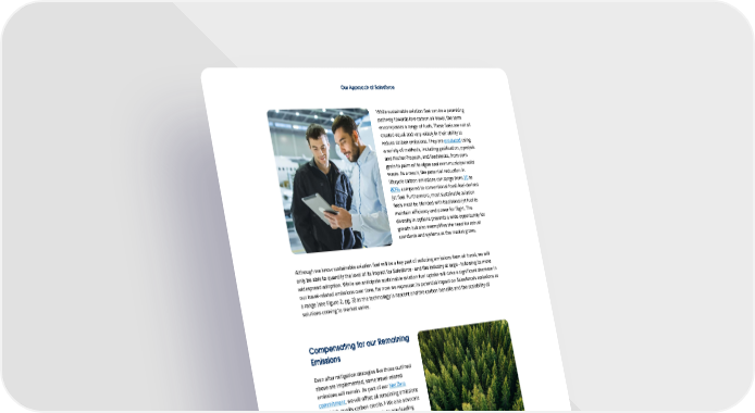 Our Approach at Salesforce Whilesustainable aviation fuel can be a promising pathway towards low-carbon air travel, the term encompasses a range of fuels. These fuels are not all created equal and vary widely in their ability to reducecarbon emissions. They are produced using a variety of methods, including gasification, pyrolysis and Fischer-Tropsch, and feedstocks, from corn grain to palm oil to algae and even municipal solid waste. As a result, the potential reduction in lifecycle carbon emissions can range from 10 to 80% compared to conventional fossil fuel-derived jet fuel. Furthermore, most sustainable aviation fuels must be blended with traditional jet fuel to maintain efficiency and power for flight. The diversity in options presents a wide opportunity for growth but also exemplifies the need for robust standards and systems as the market grows. Although we know sustainable aviation fuel will be a key part of reducing emissions from air travel, we will only be able to quantify the level of its impact for Salesforce - and the industry at large - following its more widespread adoption. While we anticipate sustainable aviation fuel uptake will drive a significant decrease in our travel-related emissions over time, for now we represent its potential impact on Salesforce’s emissions as a range (see Figure 2, pg. 3) as the technology is nascent and the carbon benefits and the scalability of solutions coming to market varies. Compensating for our Remaining Emissions Even after mitigation strategies like those outlined above are implemented, some travel-related emissions will remain. As part of our Net Zero commitment, we will offset all remaining emissions with high-quality carbon credits.3 We also advocate for businesses and governments to play leading roles in developing more sustainable travel options to support our ambition to mobilize, collaborate with, and enable others to catalyze significant changes in the global travel value chain. 3 We follow a robust due diligence process to vet carbon credits before we procure them. For every potential carbon credit purchase, we apply a set of detailed criteria that are based on global best practices. We also work with qualified independent consultants and expert brokers to help guide us. 6 | Salesforce.com/sustainability