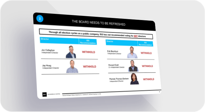 2 THE BOARD NEEDS TO BE REFRESHED Through all election cycles as a public company, ISS has not recommended voting for ANY directors Director ISS Director ISS Recommendation Recommendation Jon Callaghan WITHHOLD Erik Blachford WITHHOLD Independent Director Independent Director Jay Hoag WITHHOLD Howard Draft WITHHOLD Independent Director Ex-Independent Director Pamela Thomas-Graham WITHHOLD Independent Director Source: ISS Report, Peloton Interactive, Inc., November 20, 2020 and November 23, 2021 48