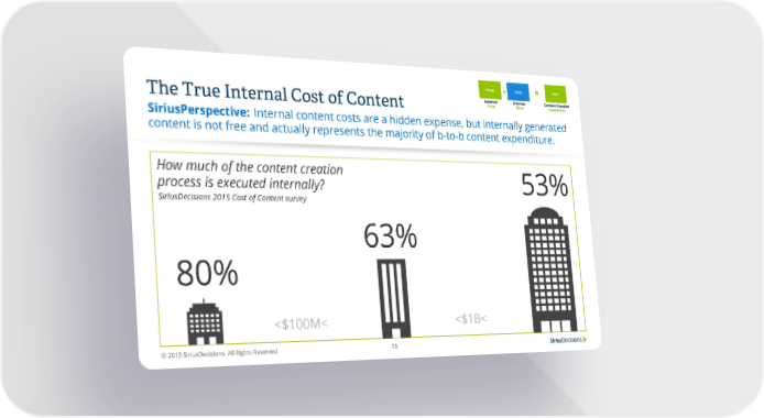 The True Internal Cost of Content Internal content costs are a hidden expense, but internally generated SiriusPerspective: content is not free and actually represents the majority of b-to-b content expenditure. How much of the content creation process is executed internally? 53% SiriusDecisions 2015 Cost of Content survey 63% 80% <$100M< <$1B< © 2015 SiriusDecisions. All Rights Reserved 13