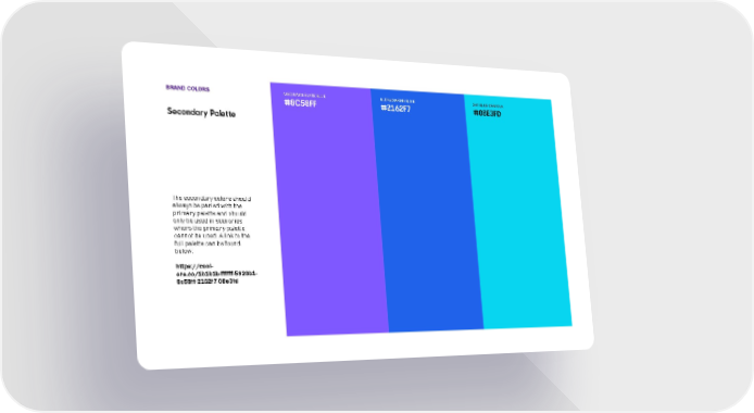 BRAND COLORS The secondary colors should always be paried with the primary palette and should only be used in scenerios where the primary palette cannot be used. A link to the full palette can be found below: https://cool- ors.co/1b1b1b-ffffff-5920b1- 8c58ff-2162f7-08e3fd Secondary Palette MEDIUMM SLATE BLUE ULTRAMARINE BLUE SKY BLUE CRAYOLA #8C58FF #2162F7 #08E3FD