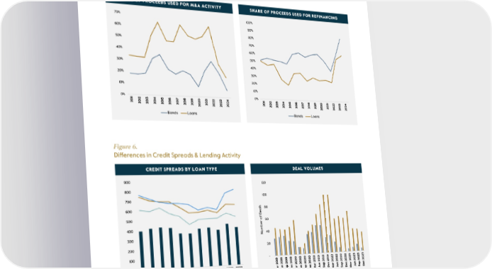 Figure 5. Re昀椀nancing Main Driver of Issuance Figure 6. Di昀昀erences in Credit Spreads & Lending Activity Figure 5. Source: Carlyle Analysis; BAML Credit Market Chartbook, March 2024. There is no guarantee any trends will continue. Figure 6. Source: Carlyle Analysis; “The U.S. Syndicated Term Loan Market: Who holds what and when?” Fed Notes, November 2019; Pitchbook, LCD Database, March 2024. There is no guarantee any trends will continue. 6
