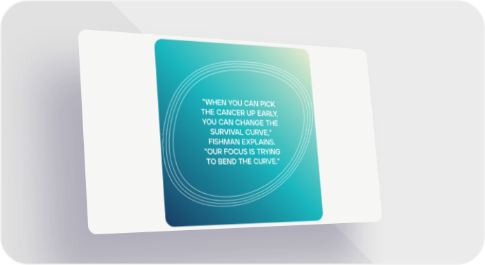 carousel 3 Page 3 “WHEN YOU CAN PICK THE CANCER UP EARLY, YOU CAN CHANGE THE SURVIVAL CURVE,” FISHMAN EXPLAINS. “OUR FOCUS IS TRYING TO BEND THE CURVE.”