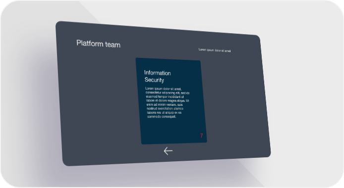 Lorem ipsum dolor sit amet Platform team Information Security Lorem ipsum dolor sit amet, consectetur adipiscing elit, sed do eiusmod tempor incididunt ut labore et dolore magna aliqua. Ut enim ad minim veniam, quis nostrud exercitation ullamco laboris nisi ut aliquip ex ea commodo consequat. 7