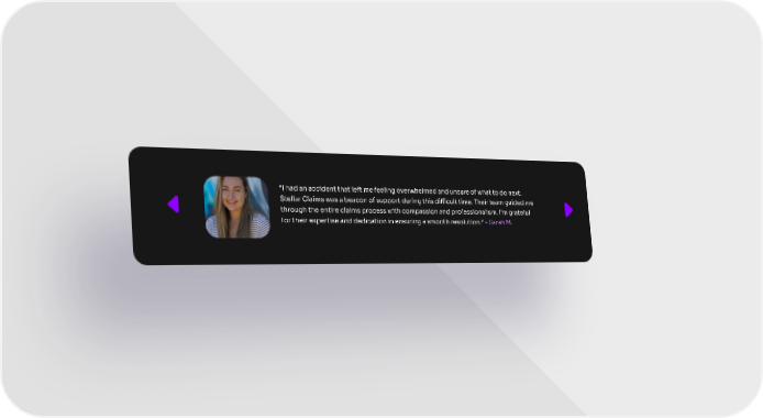 “I had an accident that left me feeling overwhelmed and unsure of what to do next. Stellar Claims was a beacon of support during this difficult time. Their team guided me through the entire claims process with compassion and professionalism. I'm grateful for their expertise and dedication in ensuring a smooth resolution.” - Sarah M.