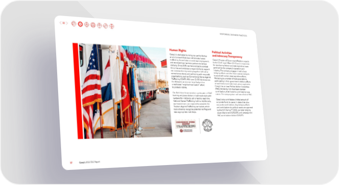 RESPONSIBLE BUSINESS PRACTICES Human Rights Political Activities Casey’s is dedicated to doing our part to further and Advocacy Transparency an environment that does not tolerate human Casey’s Director of Government Relations reports trafficking, forced labor or underage employment, to the Chief Legal Officer (CLO) and is responsible and we expect our business partners to behave for monitoring federal and state legislative issues similarly. Since 2019, we have worked to combat pertinent to the company’s operations and this crime and embrace a responsibility to support industry. The company engages in both direct our communities by coming together with other lobbying efforts and also retains outside lobbyists convenience stores and partnering with nonprofit to assist with certain state legislative efforts. organizations, such as Convenience Stores Against We belong to a number of trade associations, Trafficking (CSAT). With over 2,400 stores across participating in their government relations efforts the Midwest, we use our large footprint as at both federal and state levels, where applicable. a multistate “neighborhood watch” effort Casey’s has an Iowa Political Action Committee to protect victims. (PAC), funded by individual team member Our field store team members participate in CSAT contributions, that it uses to contribute to Iowa training and place stickers in bathroom stalls with causes. The company does not have a federal PAC. numbers for victims to call or text to reach the Casey’s also contributes a limited amount of National Human Trafficking hotline. Additionally, corporate funds to causes in states that allow our truck drivers are required to complete the corporate contributions. Any lobbying efforts Truckers Against Trafficking curriculum, which and contributions to political causes are approved trains them to recognize potential red flags and by the SLT. During FY 2022, our total lobbying take appropriate next steps. expenditures were $213,000, and campaign and PAC contributions totaled $35,875. 17 Casey’s 2022 ESG Report