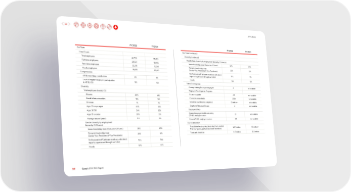 APPENDIX FY 2022 FY 2021 FY 2022 FY 2021 Our Team Our Team (continued) Head Count Diversity (continued) Total employees 42,739 37,653 Racial/ethnic diversity by employment hierarchy (% diverse) Full-time employees 20,521 18,085 Senior leadership team (Executive Officers) 57% 37% Part-time employees 22,218 19,568 Extended leadership team 28% 21% Hourly employees 39,319 34,610 (Senior Vice Presidents & Vice Presidents) Compensation Professional staff (all team members with direct 10% 9% reports; supervisors through our CEO) 401(k) matching contribution 6% 6% Hourly 16% 13% Level of eligible employee participation 15% 15% Talent Development in 401(k) (%) Diversity Average training hours per employee 4 not available Total employee diversity (%) Employee Development Programs Women 60% 63% Courses available 412 not available Racial/ethnic minorities 15% 12% Course hours available 200+ not available Veterans 1% 1% Individual enrollments completed 1.5 million + not available Ages 29 or younger 44% 44% Employee Resource Groups 2 not available Ages 30-50 36% 35% Employee Safety Ages 51 or older 20% 21% General employee health and safety 21 not available (EH&S) manager courses Average tenure (years) 2.2 2.6 General EH&S employee courses 20 not available Gender diversity by employment Our Communities hierarchy (% Women) Senior leadership team (Executive Officers) 28% 25% Total philanthropic giving (including funds enabled $4.7 million $5 million+ from our guests, partners and team members) Extended leadership team 28% 31% Total cash donations $1.7 million $1.2 million (Senior Vice Presidents & Vice Presidents) Professional staff (all team members with direct 73% 76% reports; supervisors through our CEO) Hourly 57% 61% 59 Casey’s 2022 ESG Report