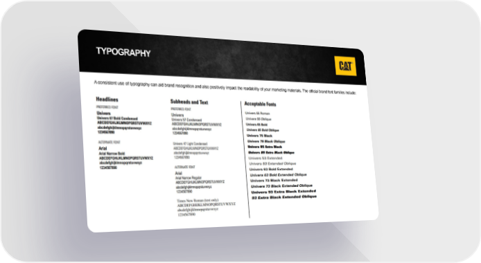 Cat Brand Book Page 8 Page 10TYPOGRAPHY A consistent use of typography can aid brand recognition and also positively impact the readability of your marketing materials. The official brand font families include: