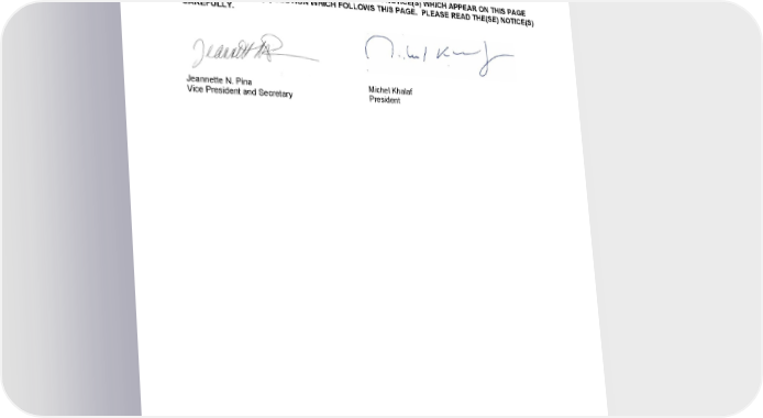 For Residents of North Dakota: If You are not satisfied with Your Certificate, You may return it to Us within 20 days after You receive it, unless a claim has previously been received by Us under Your Certificate. We will refund within 30 days of Our receipt of the returned Certificate any Premium that has been paid and the Certificate will then be considered to have never been issued. You should be aware that, if You elect to return the Certificate for a refund of premiums, losses which otherwise would have been covered under Your Certificate will not be covered. WE ARE REQUIRED BY STATE LAW TO INCLUDE THE NOTICE(S) WHICH APPEAR ON THIS PAGE AND IN THE NOTICE(S) SECTION WHICH FOLLOWS THIS PAGE. PLEASE READ THE(SE) NOTICE(S) CAREFULLY. Jeannette N. Pina Michel Khalaf Vice President and Secretary President GCERT2024-WSHCA-WA-LIFE-RETIREE1 2