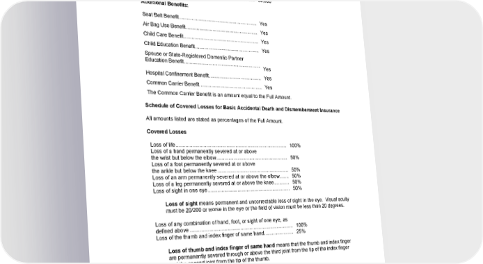 SCHEDULE OF BENEFITS (continued) Accidental Death and Dismemberment Insurance (AD&D) For You: Basic AD&D Basic Accidental Death and Dismemberment Insurance for You is NOT Portability Eligible Insurance Full Amount For Basic AD&D ......................................... $5,000 Additional Benefits: Seat Belt Benefit ............................................................ Yes Air Bag Use Benefit ........................................................ Yes Child Care Benefit .......................................................... Yes Child Education Benefit .................................................. Yes Spouse or State-Registered Domestic Partner Education Benefit ........................................................... Yes Hospital Confinement Benefit ......................................... Yes Common Carrier Benefit ................................................ Yes The Common Carrier Benefit is an amount equal to the Full Amount. Schedule of Covered Losses for Basic Accidental Death and Dismemberment Insurance All amounts listed are stated as percentages of the Full Amount. Covered Losses Loss of life .................................................................................... 100% Loss of a hand permanently severed at or above the wrist but below the elbow ....................................................... 50% Loss of a foot permanently severed at or above the ankle but below the knee ....................................................... 50% Loss of an arm permanentl y severed at or above the elbow ....... 50% Loss of a leg permanently severed at or above the knee ............ 50% Loss of sight in one eye ............................................................... 50% Loss of sight means permanent and uncorrectable loss of sight in the eye. Visual acuity must be 20/200 or worse in the eye or the field of vision must be less than 20 degrees. Loss of any combination of hand, foot, or sight of one eye, as defined above .............................................................................. 100% Loss of the thumb and index fin ger of same hand ....................... 25% Loss of thumb and index finger of same hand means that the thumb and index finger are permanently severed through or above the third joint from the tip of the index finger and the second joint from the tip of the thumb. Loss of speech and loss of hearing ............................................. 100% Loss of speech or loss of hearing ................................................ 50% Loss of speech means the entire and irrecoverable loss of speech that continues for 6 consecutive months following the accidental injury. Loss of hearing means the entire and irrecoverable loss of hearing in both ears that continues for 6 consecutive months following the accidental injury. GCERT2024-WSHCA-WA-LIFE-EMPLOYEE1 31