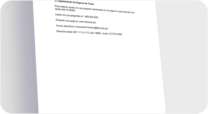 Teléfono gratuito: 1-800-438-6388 Correo electrónico: [email protected] Dirección postal: Metropolitan Life Insurance Company 700 Quaker Lane 2nd Floor Warwick, RI 02886 El Departamento de Seguros de Texas Para obtener ayuda con una pregunta relacionada con los seguros o para presentar una queja ante el estado: Llame con sus preguntas al: 1-800-252-3439 Presente una queja en: www.tdi.texas.gov Correo electrónico: [email protected] Dirección postal: MC 111-1A, P.O. Box 149091, Austin, TX 78714-9091 GCERT2024-WSHCA-WA-LIFE-EMPLOYEE1 4